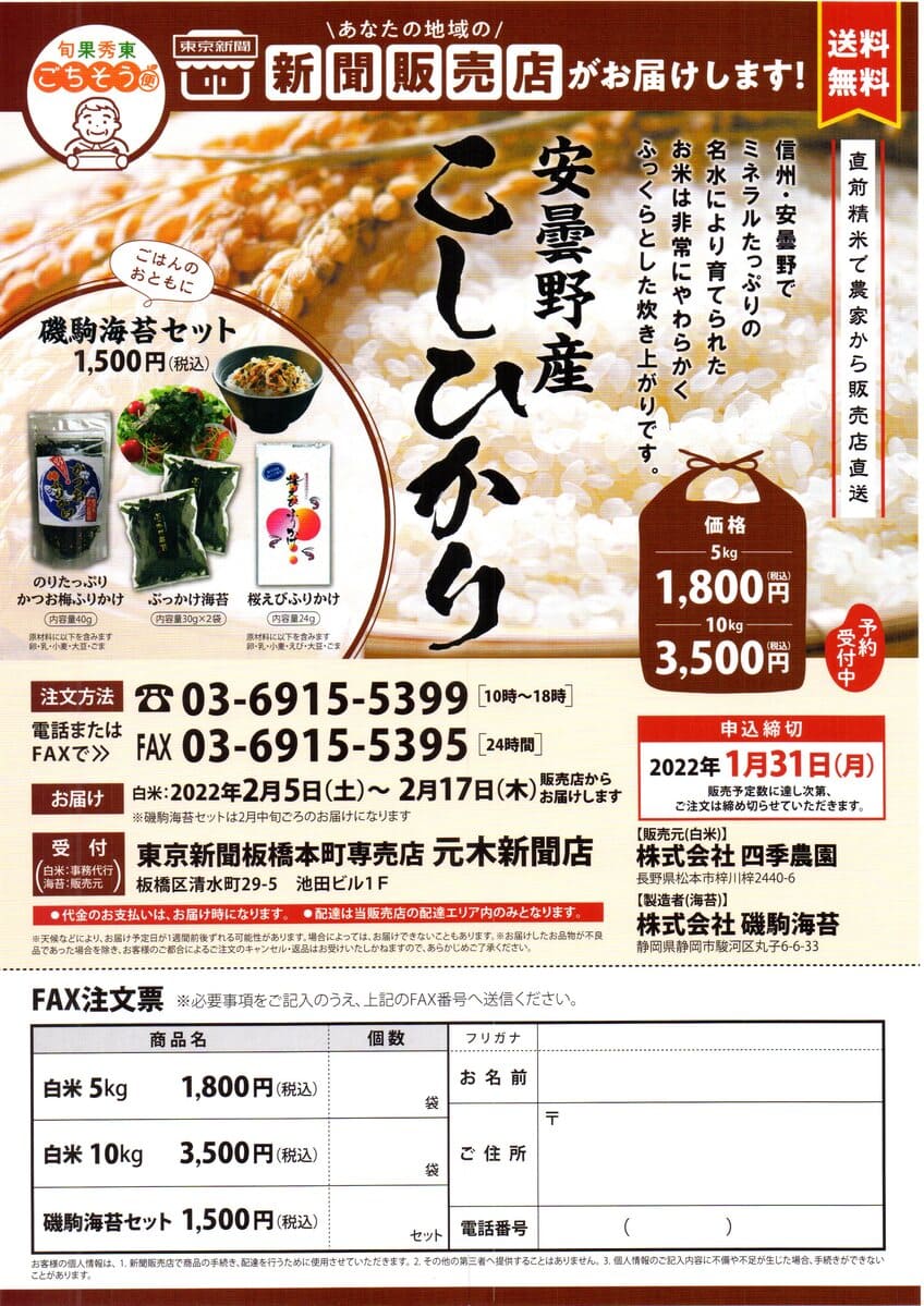 毎回みなさまにご好評をいただいております「安曇野産こしひかり」のご予約を開始いたします。